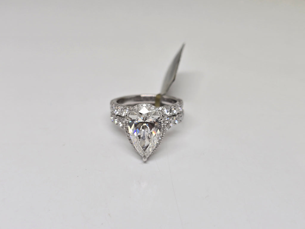 Stunning Pear shape 5.80CT Lab Diamond Engagement Rings in 14K White Gold
