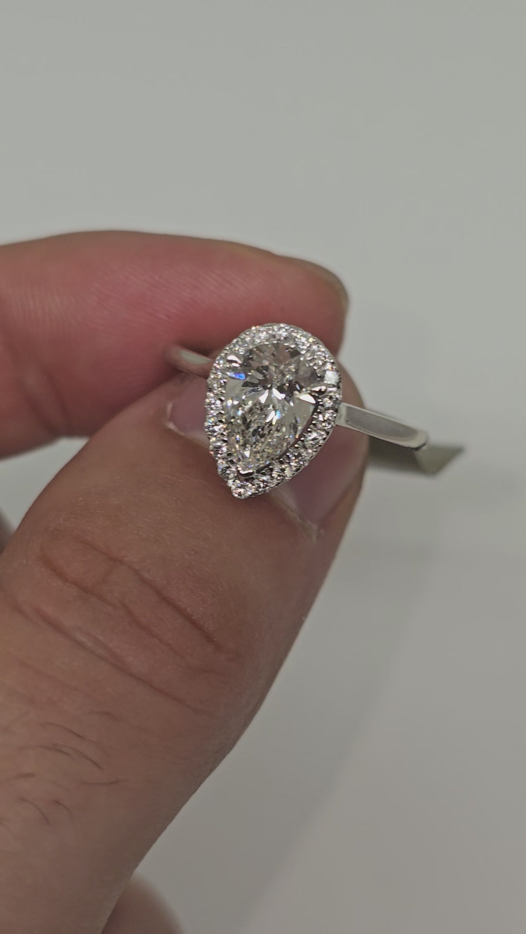 Beautiful Pear shape 1.29CT Lab Diamond Engagement Rings in 14K White Gold