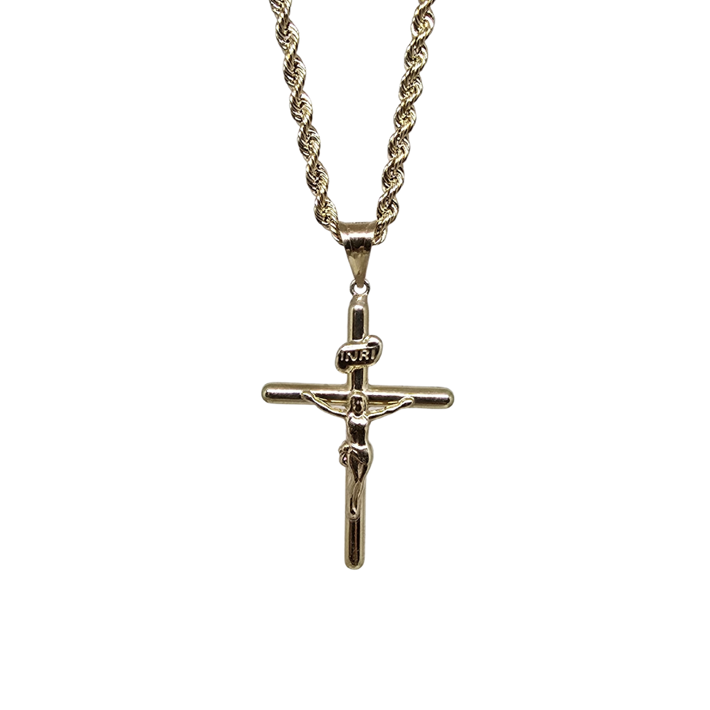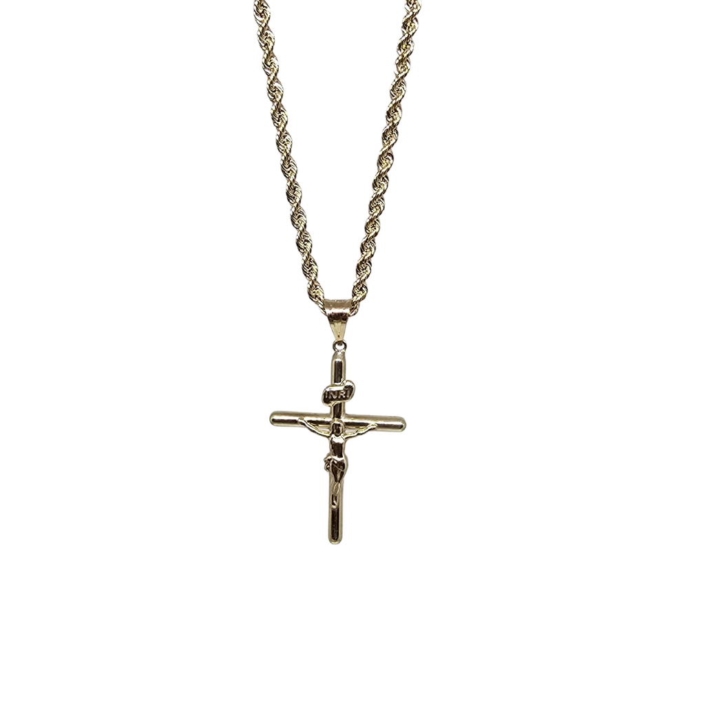 10K Gold Rope Chain+ 10K Gold Cross Pendant