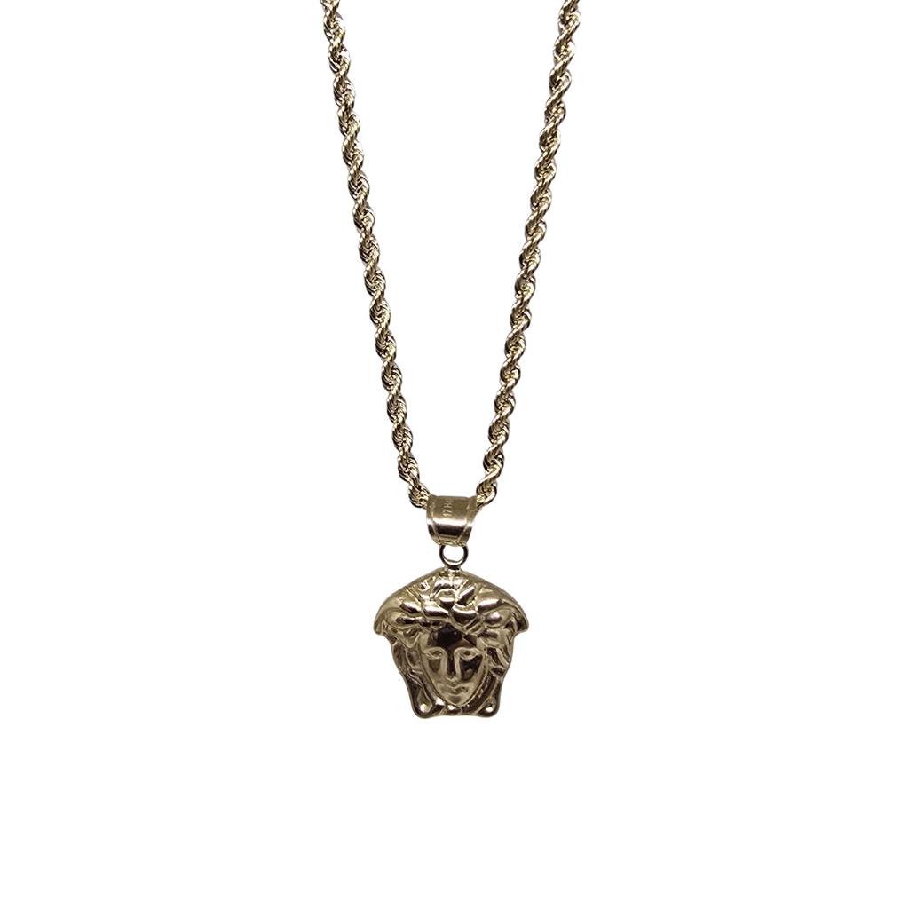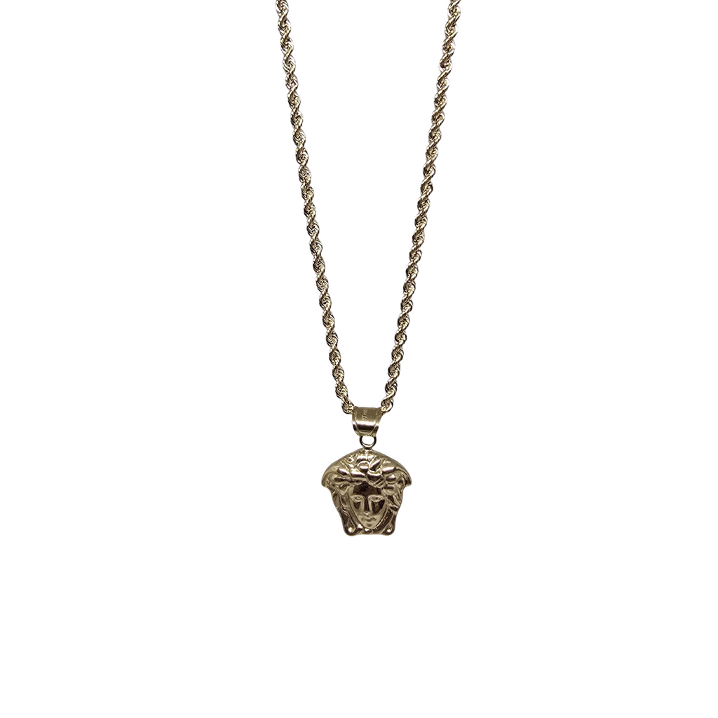 10K Yellow Gold Medusa Pendant with Rope Chain