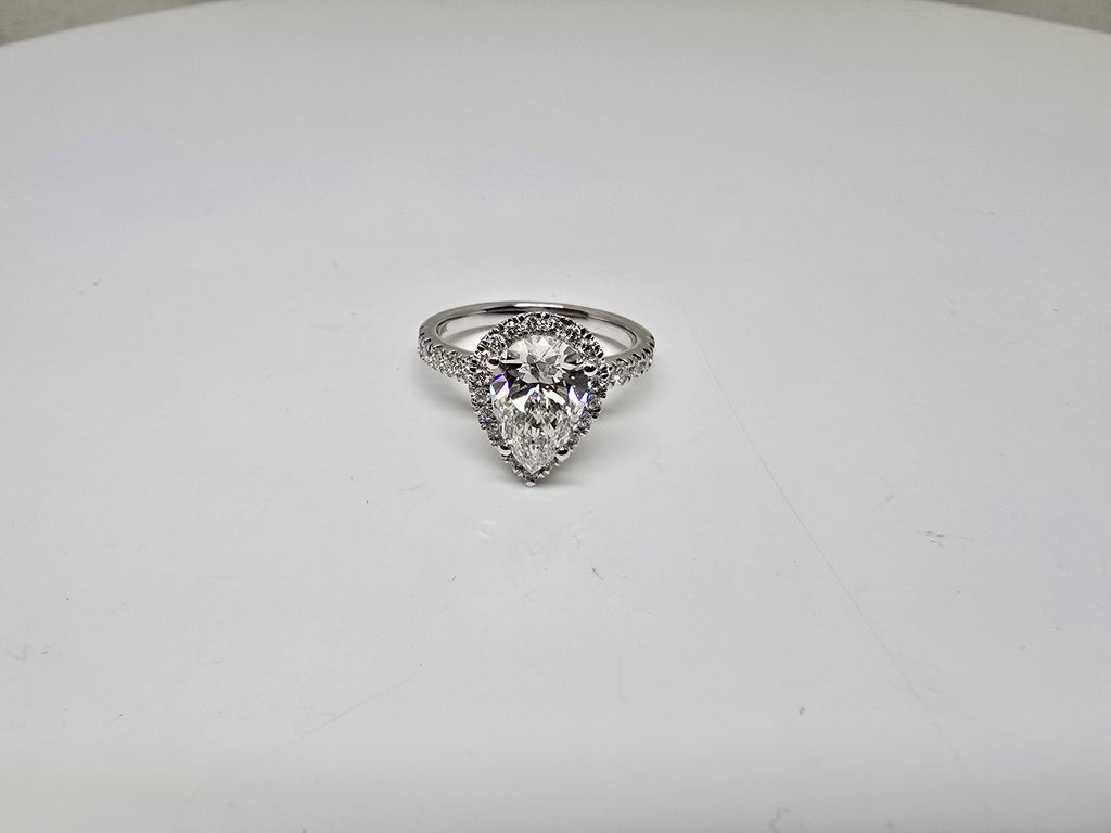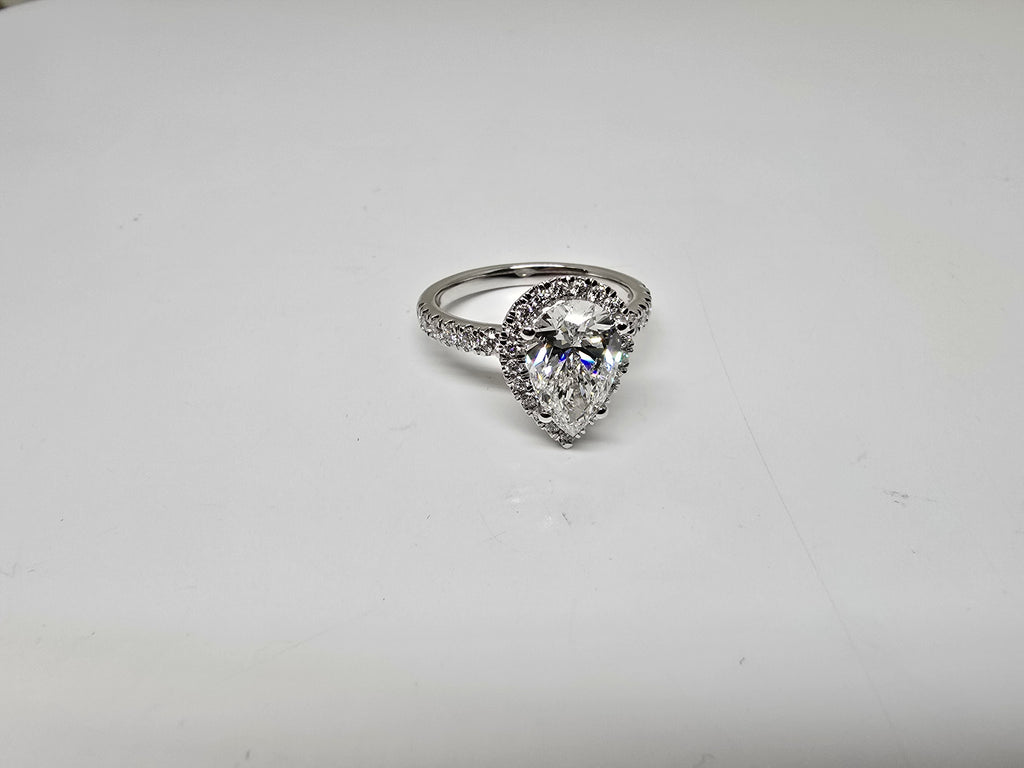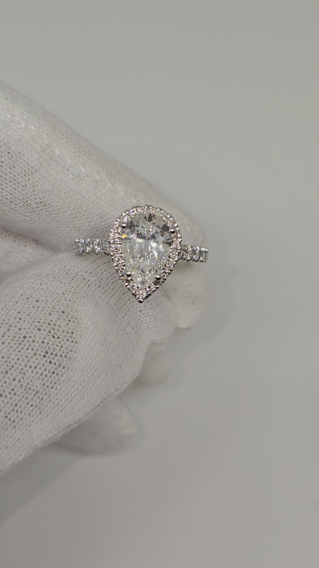 Bague de fiançaille poire 2.61CT Lab Diamond en or blanc 14K