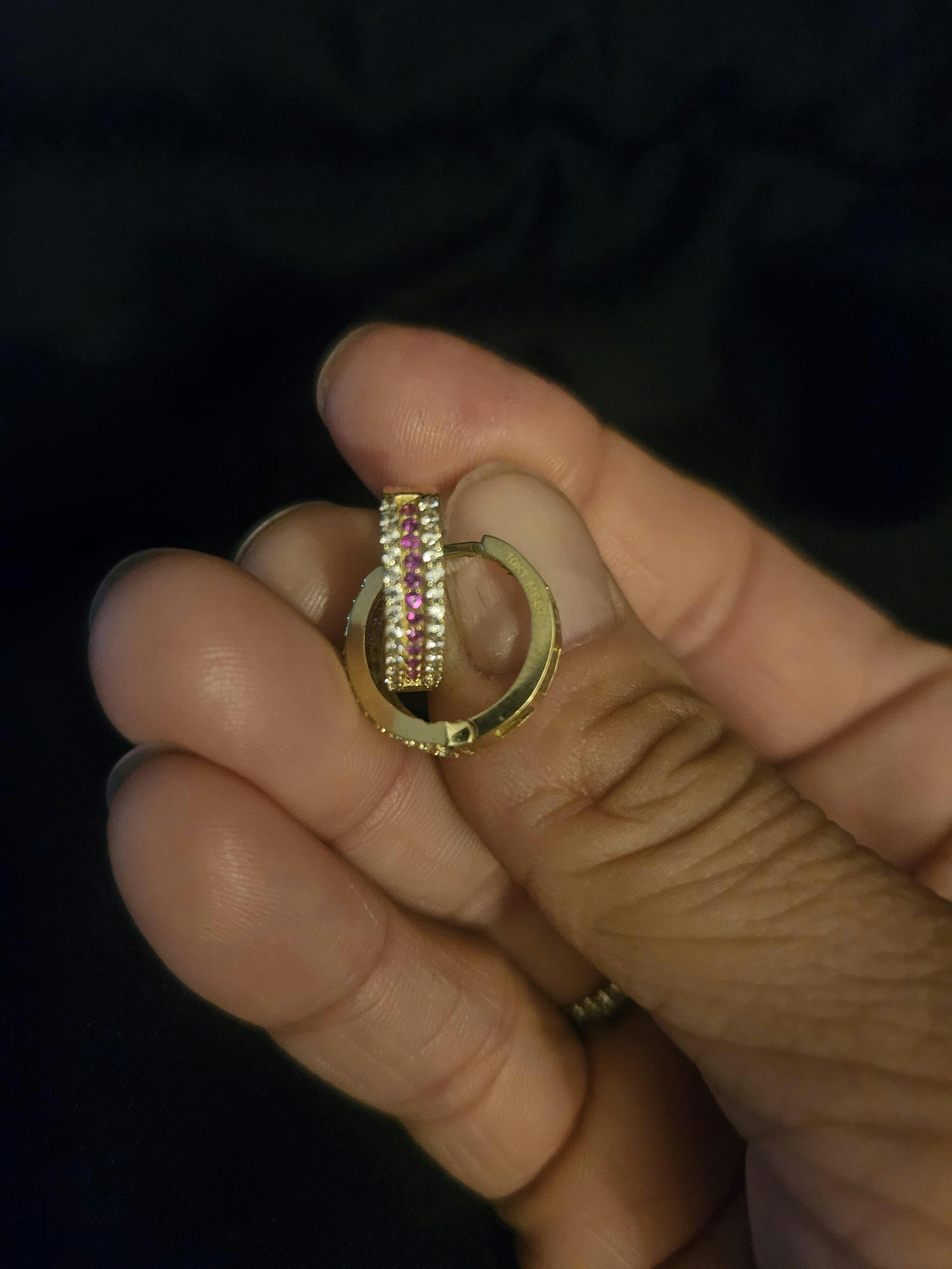 Accolades en or jaune 10k - Pierres roses et blanches