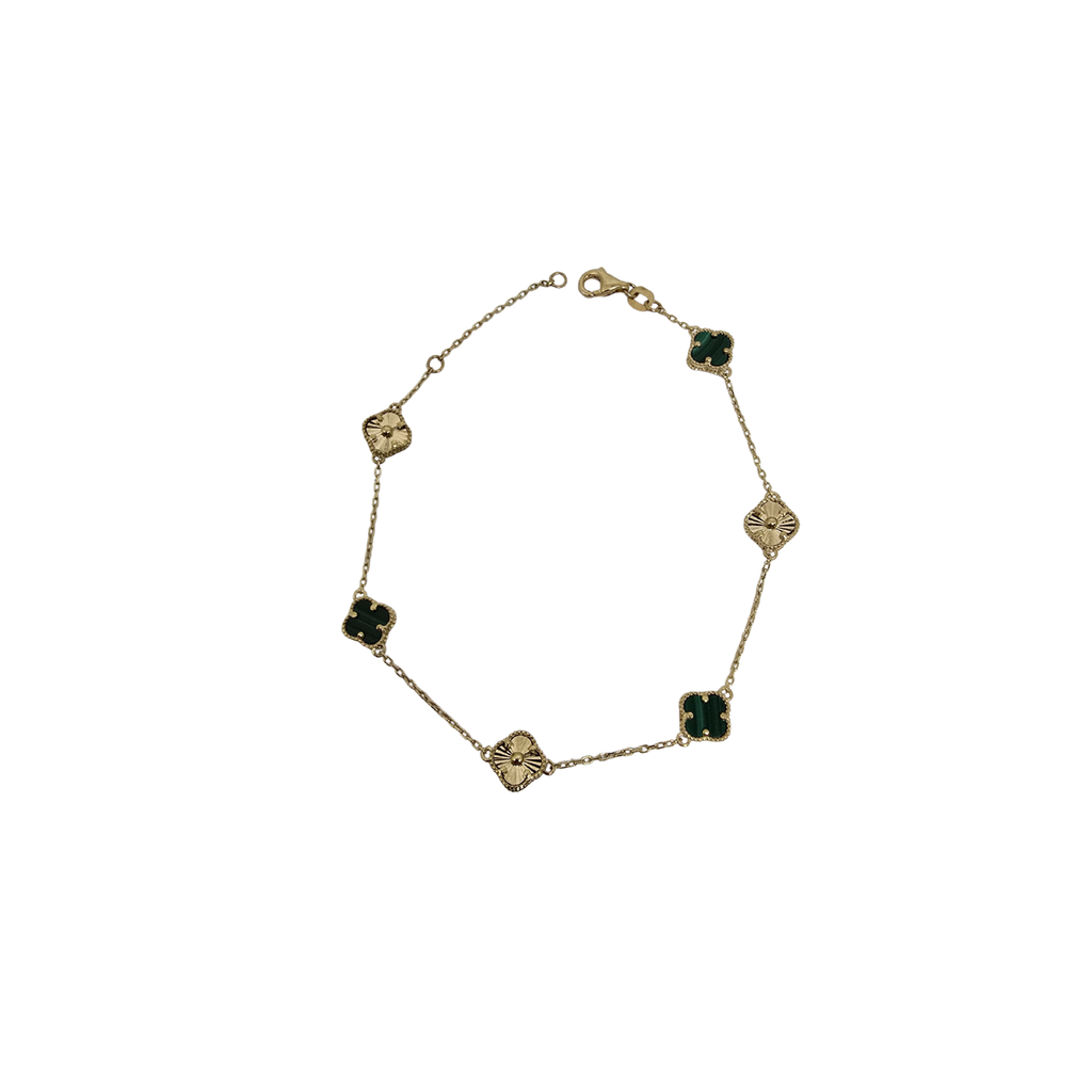 Bracelet en or 10K avec petits trèfles en or et nacre verte
