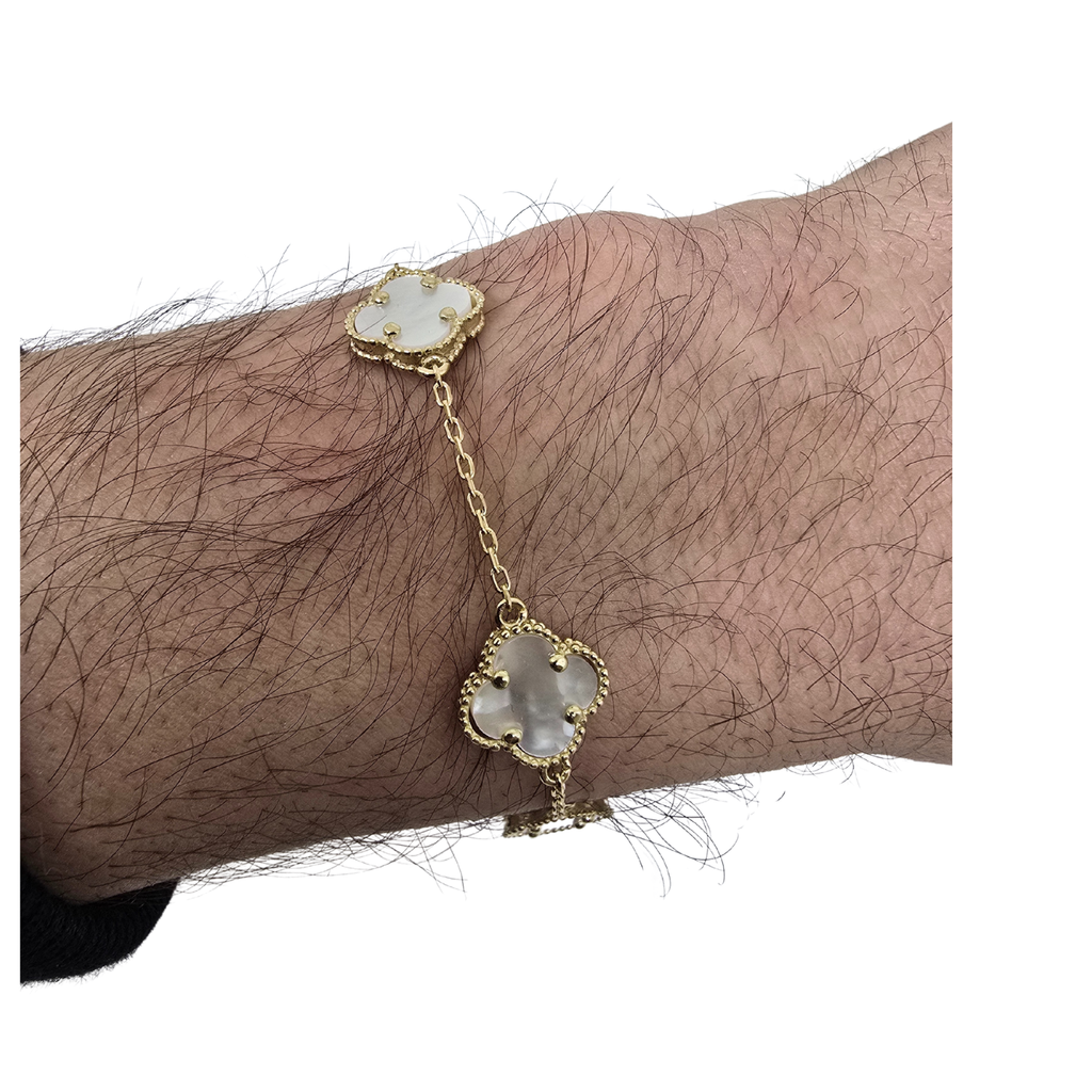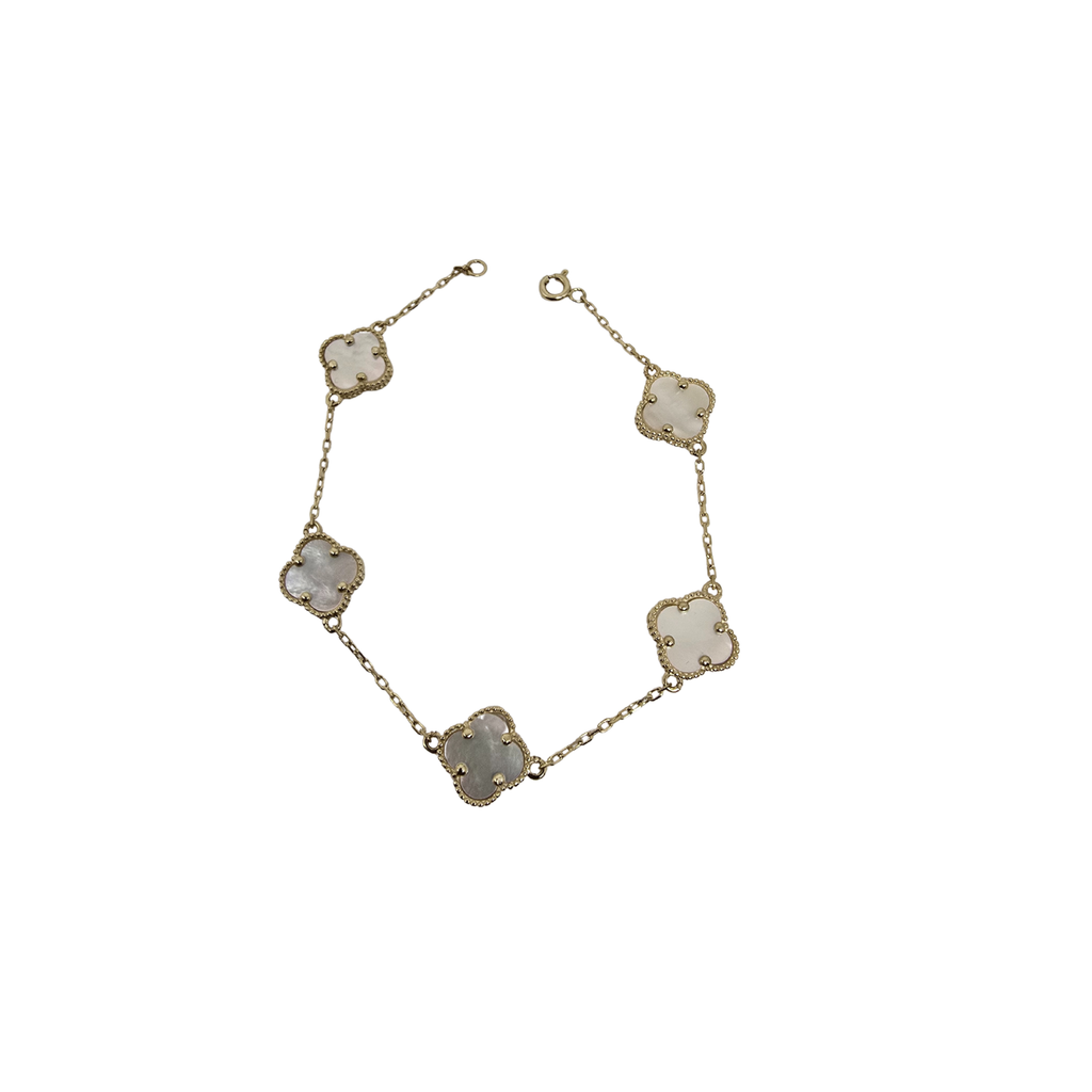 Bracelet en or 10K avec trèfle en nacre blanche de taille moyenne