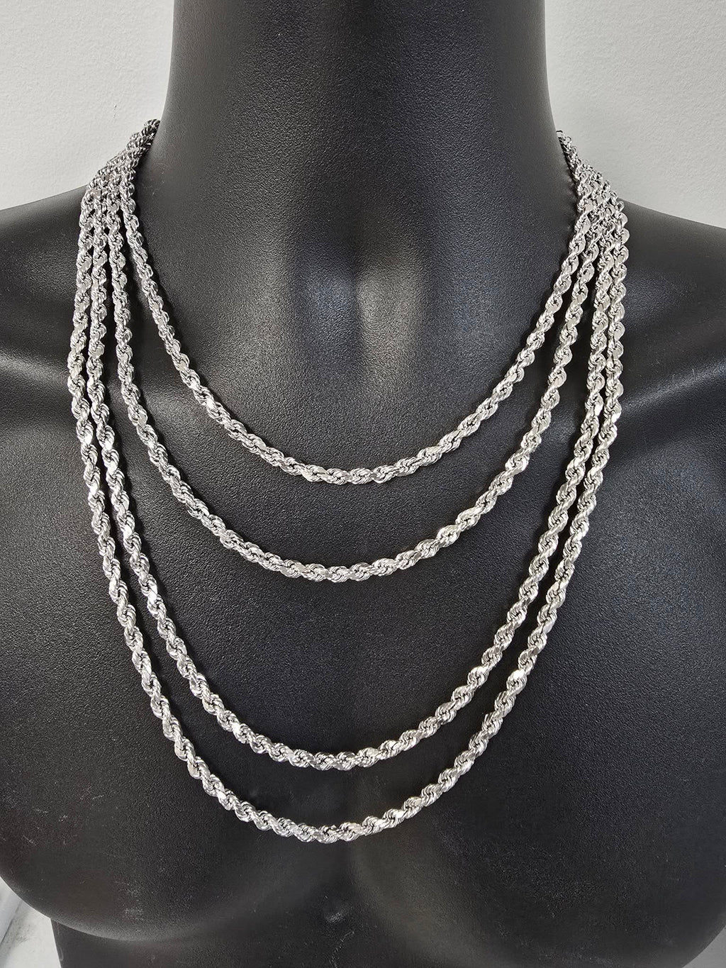 Luxury Diamond Cut Rope chain in 10 karat White gold for men and women.
